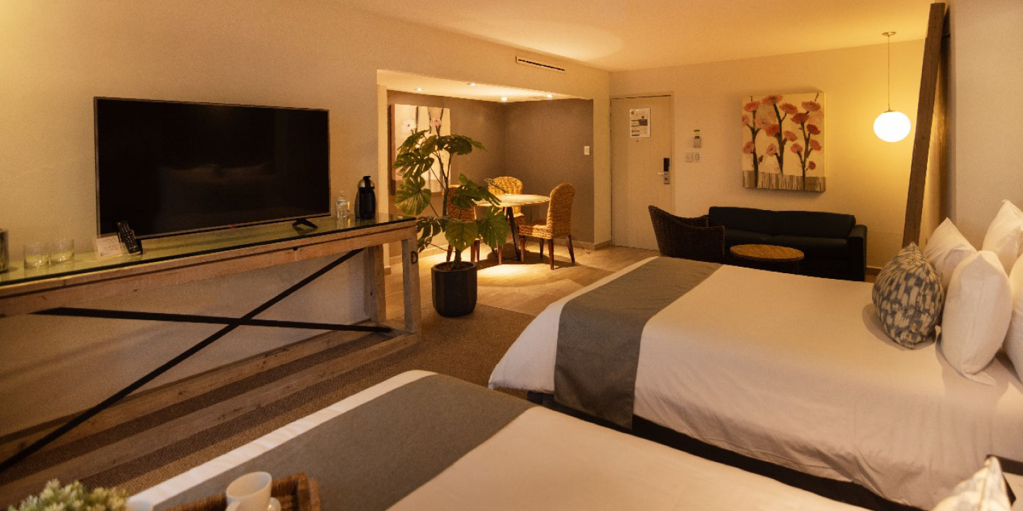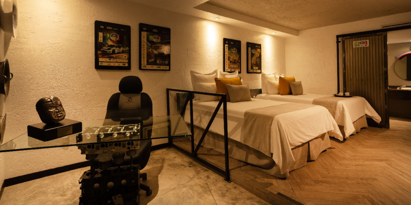 Disfrute una experiencia única en nuestras Suites Pool, recientemente restauradas y diseñadas para cautivar con su estilo contemporáneo y su encanto temático. Inspiradas en la emoción del Rally WRC o en la tradición de la fiesta taurina, cada suite ofrece una atmósfera singular que combina carácter, confort y distinción. Ubicadas frente a la zona de alberca, invitan a relajarse y disfrutar del ambiente soleado y vibrante del hotel. Equipadas con selectas amenidades que asegura el descanso perfecto, son el refugio ideal para quienes buscan una estancia con personalidad y un toque de exclusividad.