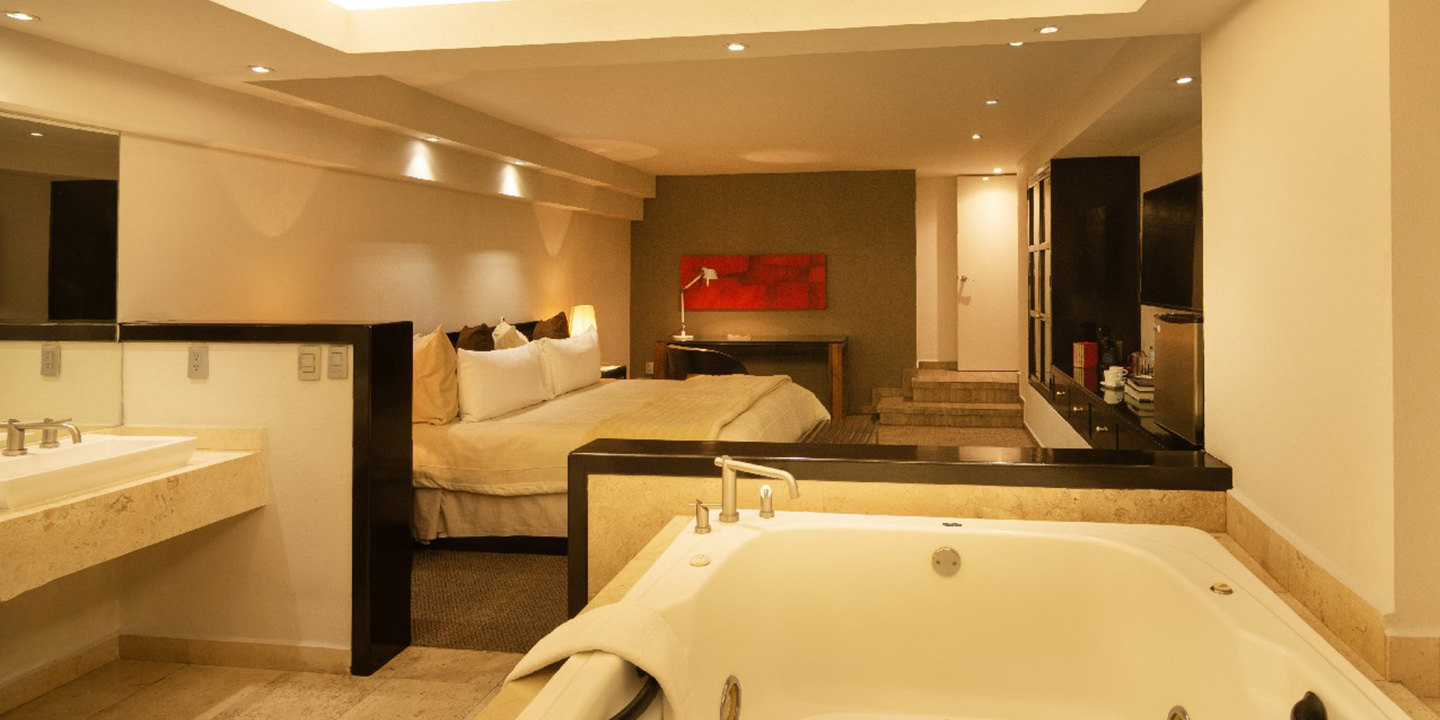 Descubra la armonía entre elegancia y confort en nuestras Suites Executive, ubicadas en el exclusivo piso ejecutivo de la torre. Diseñadas para quienes valoran la privacidad y el buen gusto, estas suites ofrecen una refinada sala de estar y una tina de descanso que invita a disfrutar momentos de serenidad absoluta. Cada detalle ha sido pensado para su bienestar, desde el kit de amenidades para baño hasta el menú de almohadas, que garantiza un descanso a la medida de sus preferencias, las Suites Executive son el espacio ideal para quienes buscan una experiencia de hospedaje superior.